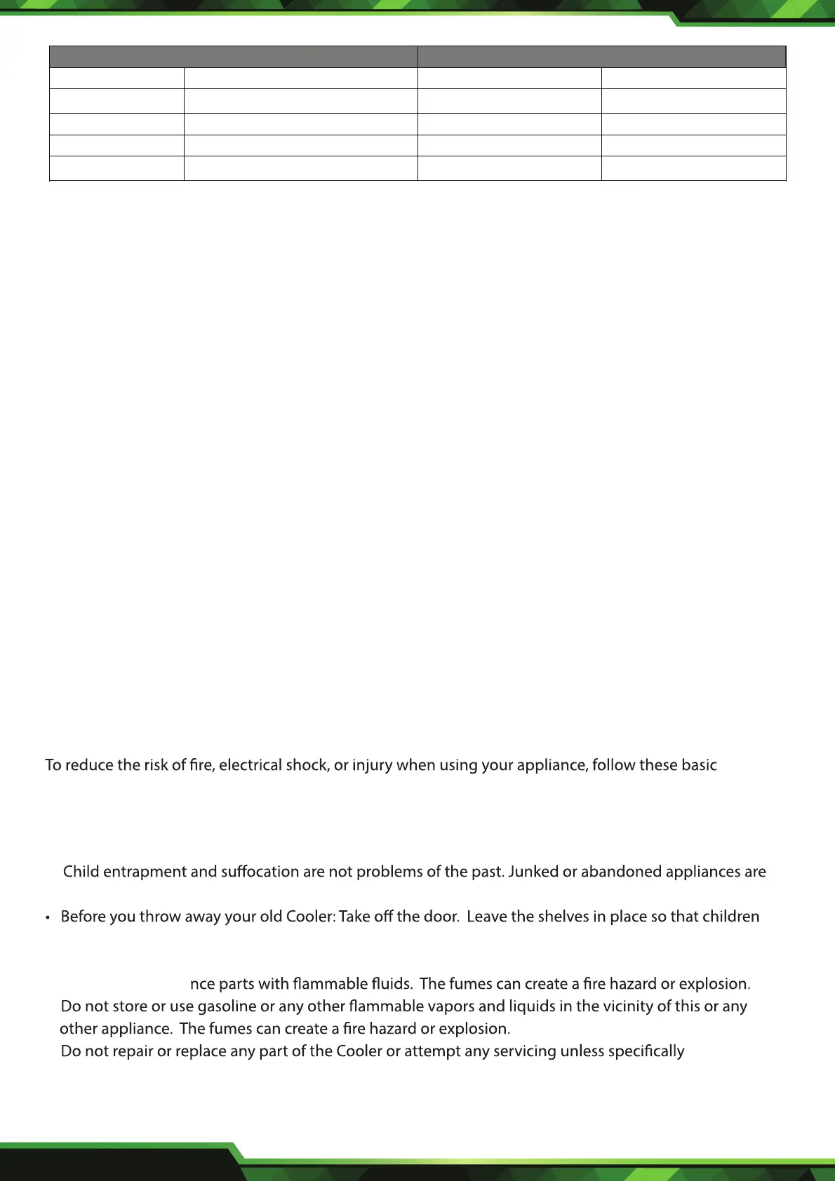 • Read all instructions before using the Cooler.