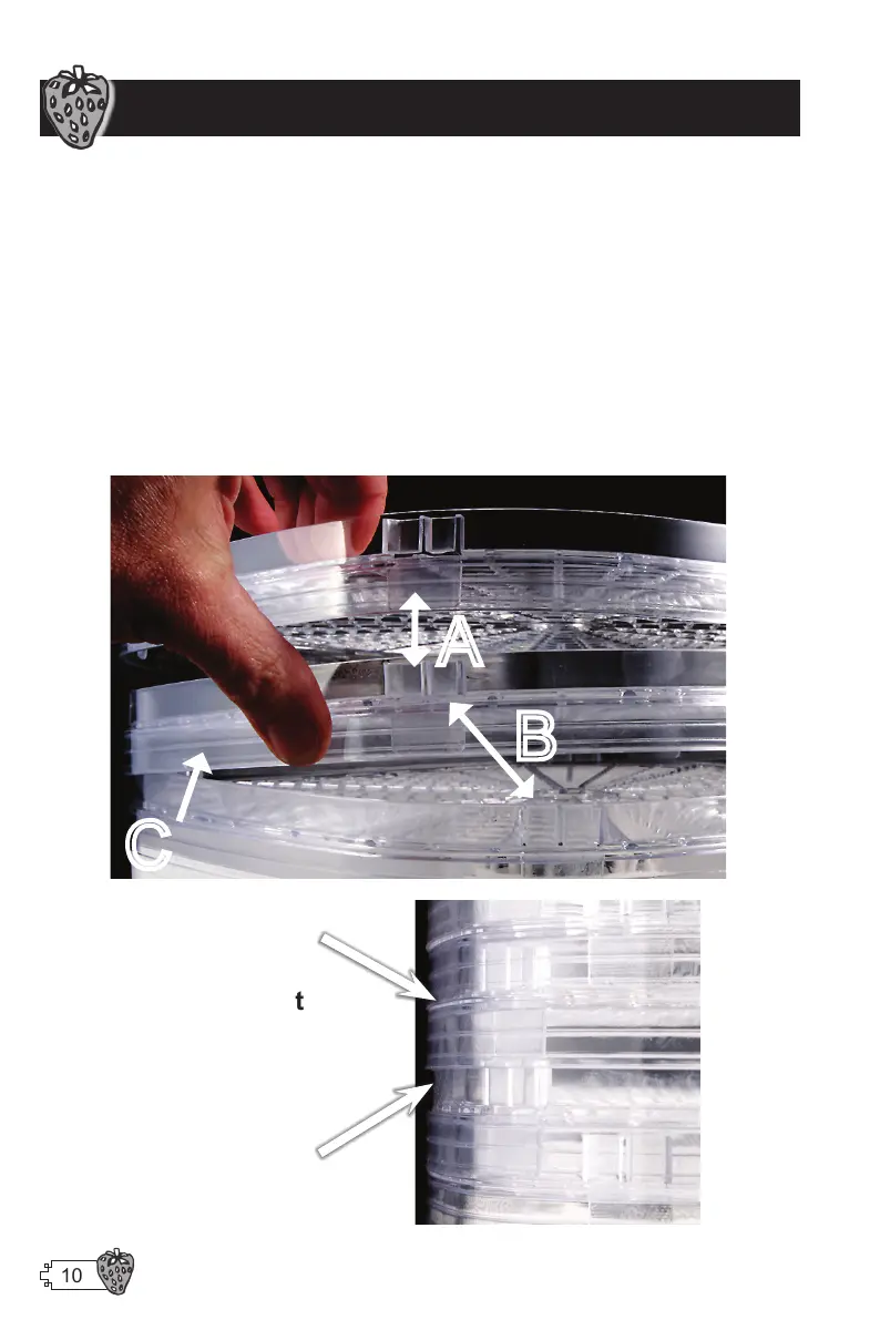 changed by rotating a tray 1/4turn. The wide portion of the trays always face down (“C”