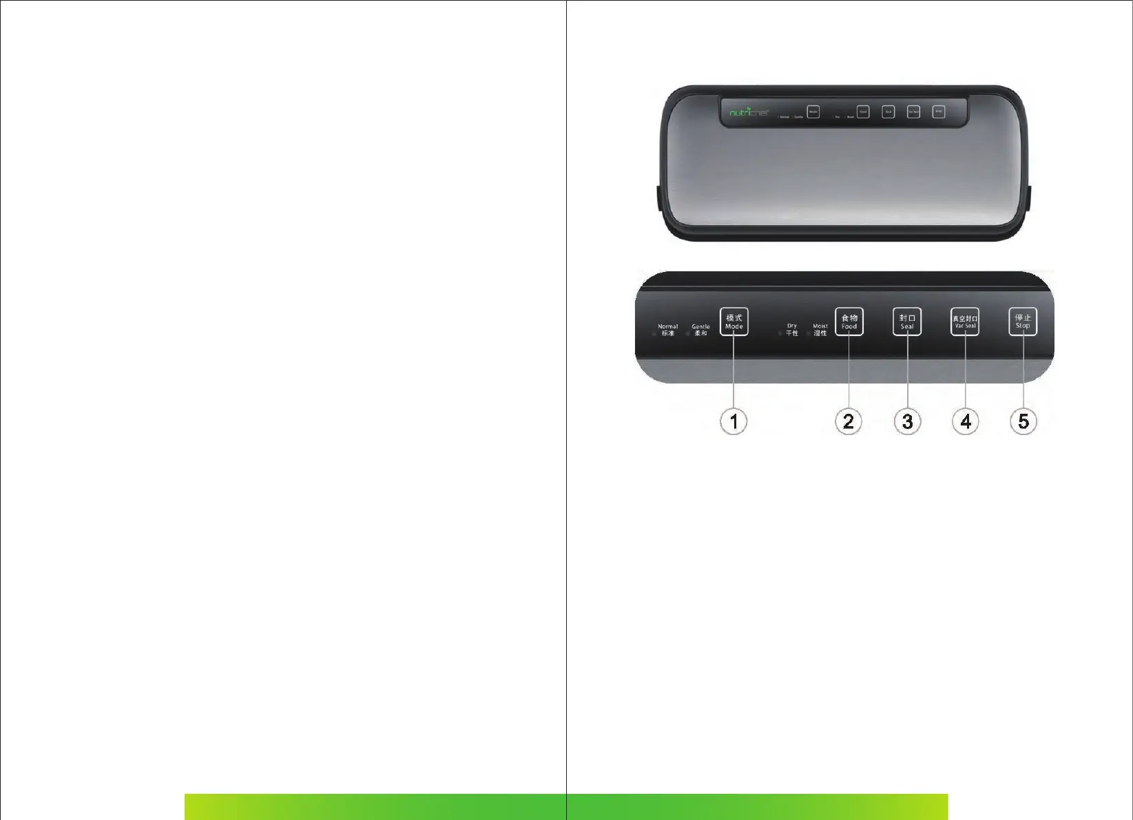 3. "Seal" button (with LED): Press this button to seal the bag (intervals of 40