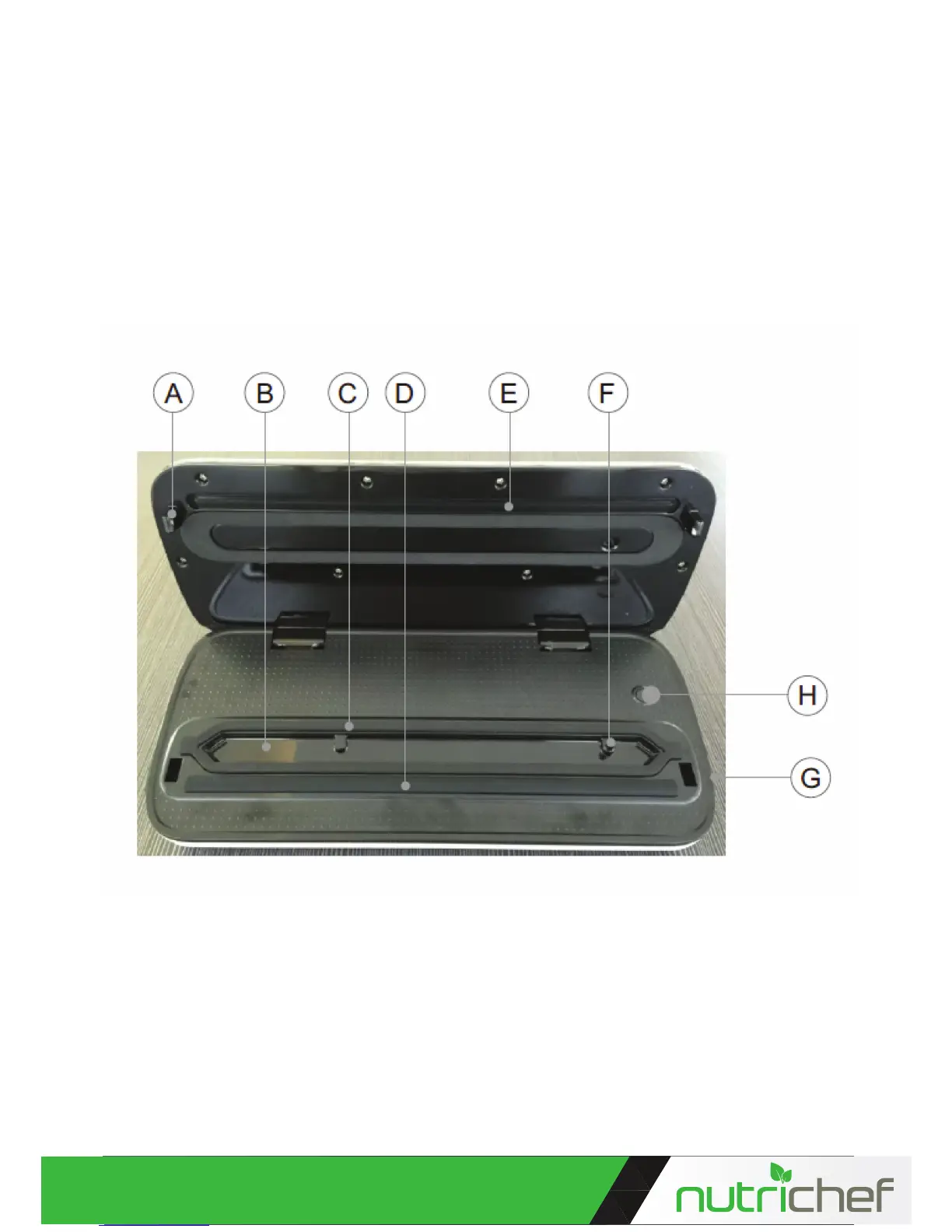 H. Canister button: Press this button, the appliance begins to vacuum package the canister until the pro-