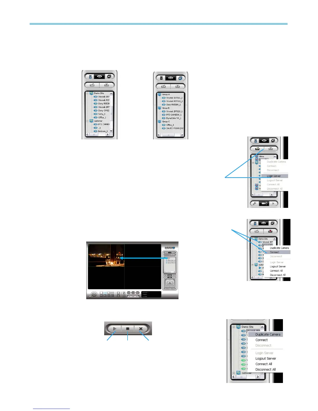 Option2: On the server/ camera list, right click on a camera to obtain the menu options to connect/