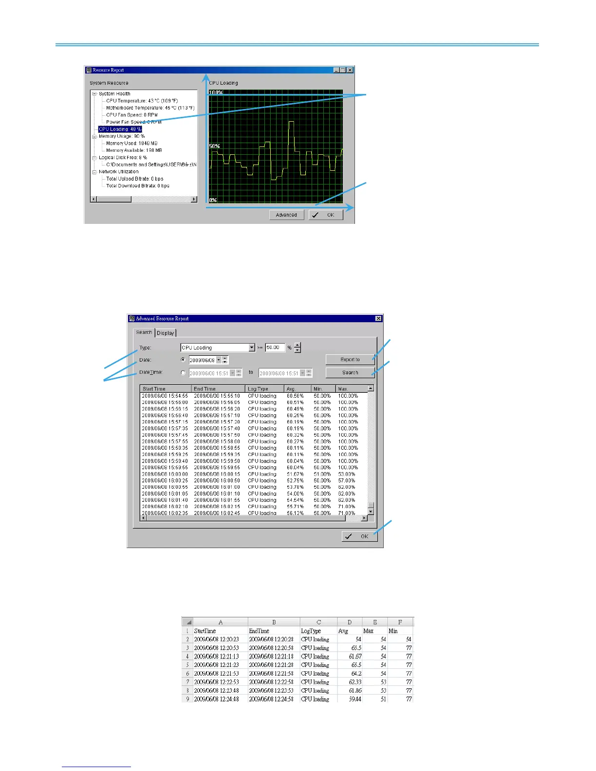 Click the Advanced button to search and export system logs in “Search” tab and obtain the history diagram
