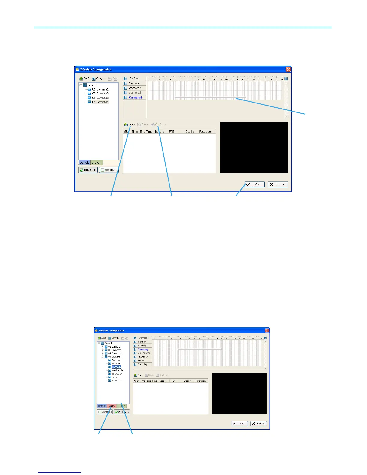 You may set up the schedule for each channel/camera by repeating the process above, or by simply