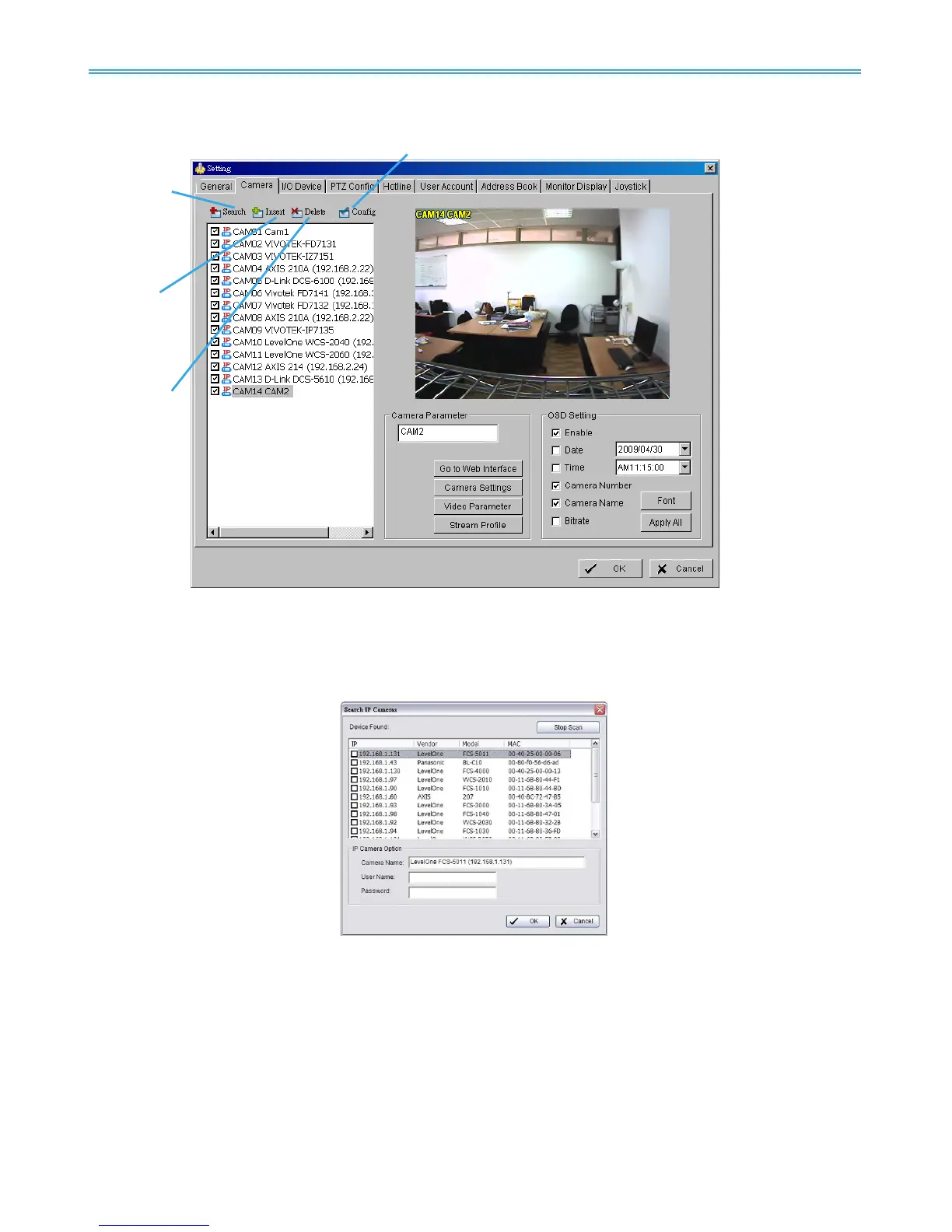 settings with the Setting panel. See following part (IP Camera / Video Server Setting panel) for detail.