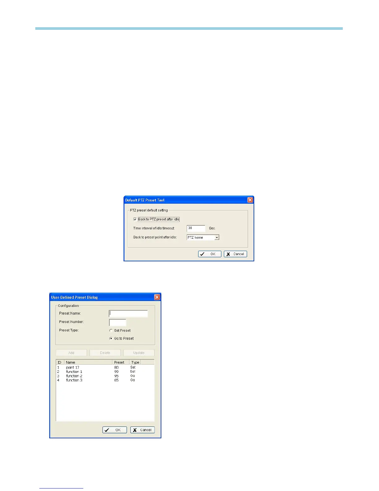 preset point when no PTZ commands are under action. To enable this option, check “Back to PTZ