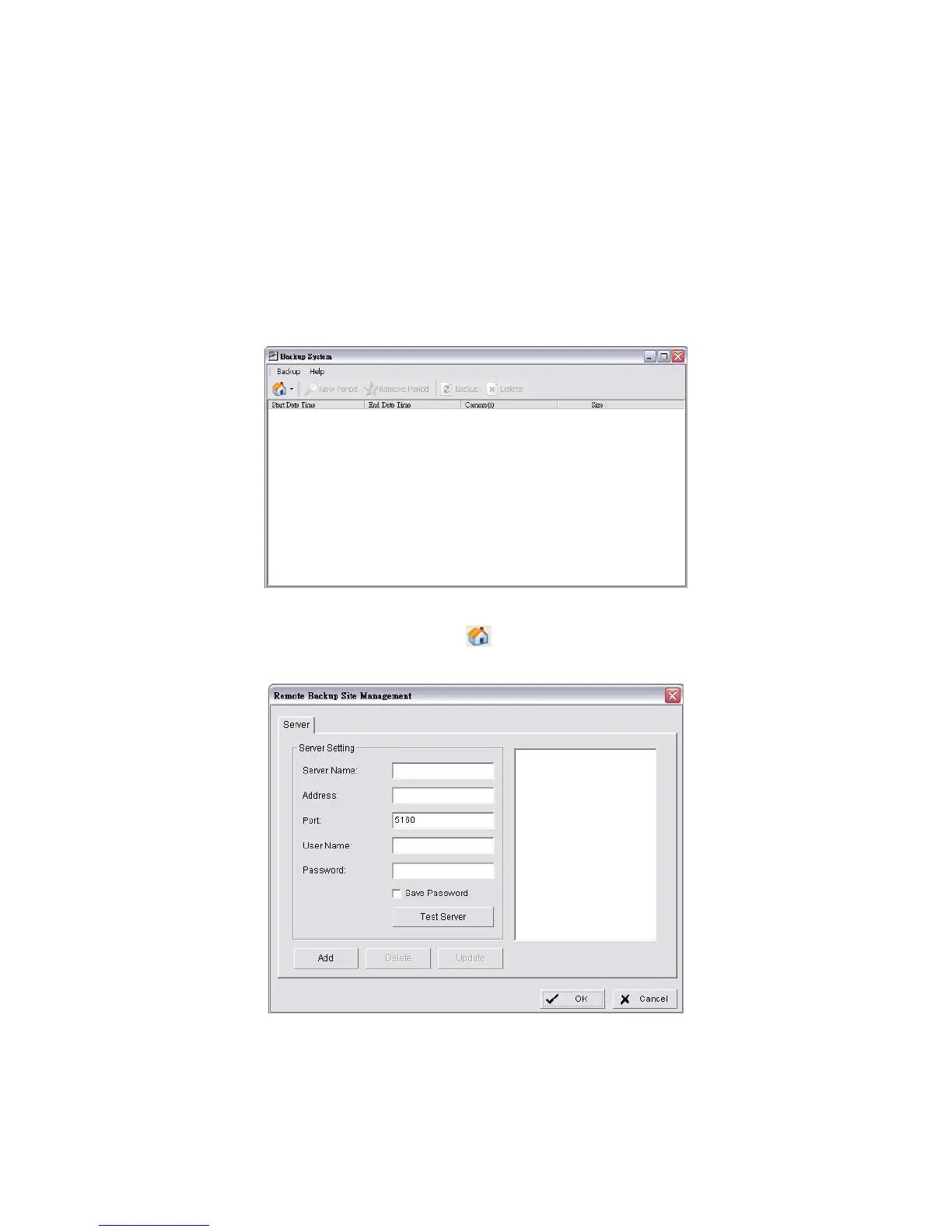 2. Click the Remote Server Site button to set up remote server.