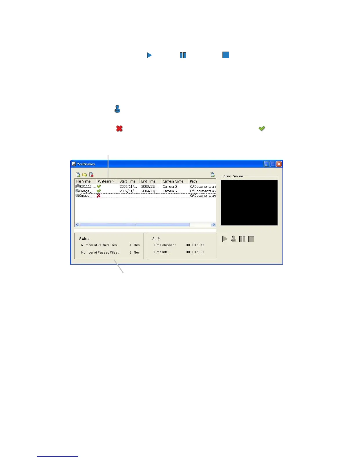Video Preview: Preview designate file in verification list. Select the