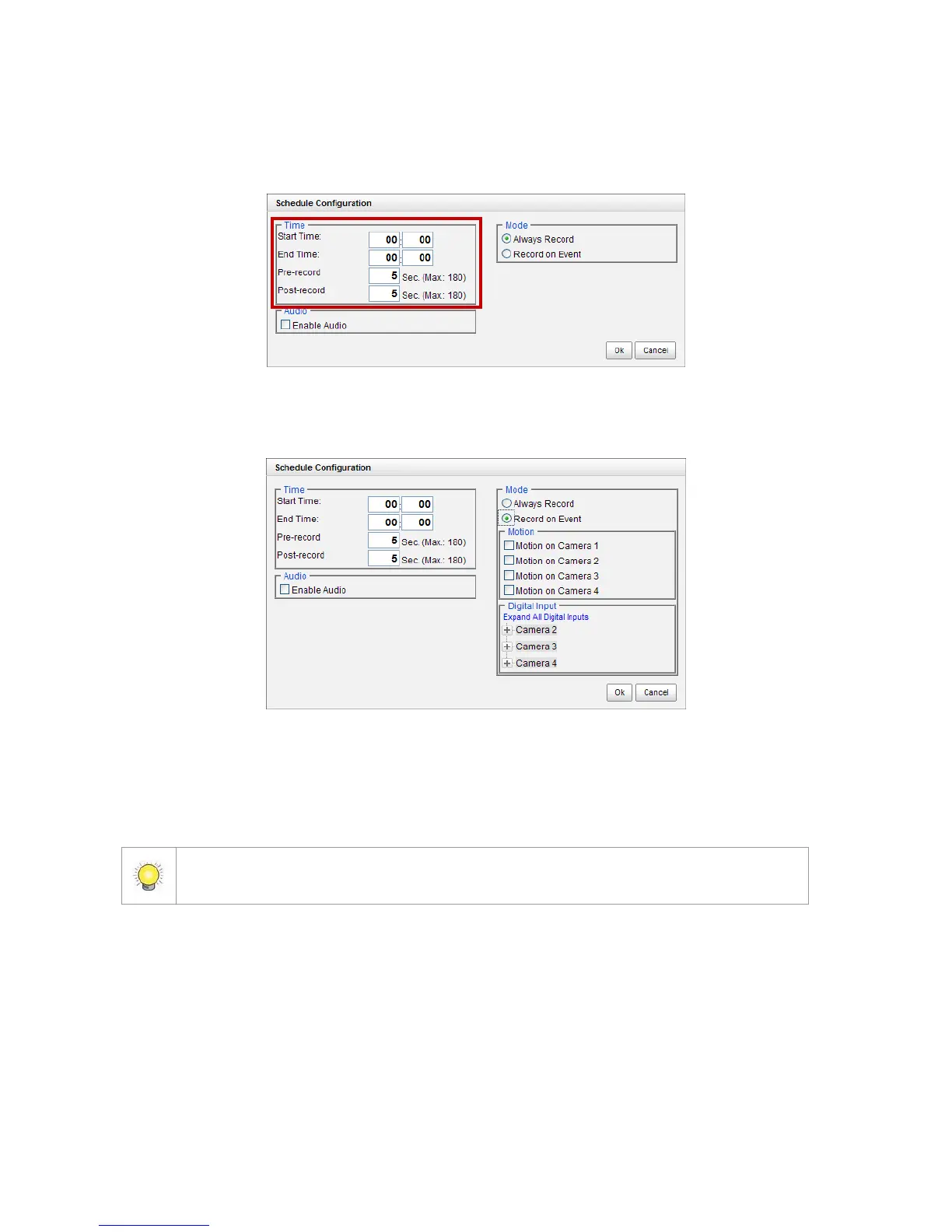 7. The default setting of the camera’s recording schedule is from 00:00 to