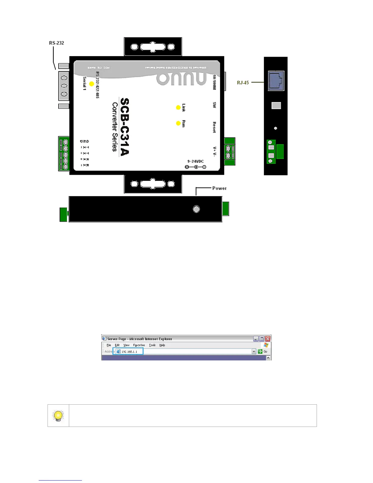 Step 1: Use IE-browser to setup SCB-C31A, the default IP address is