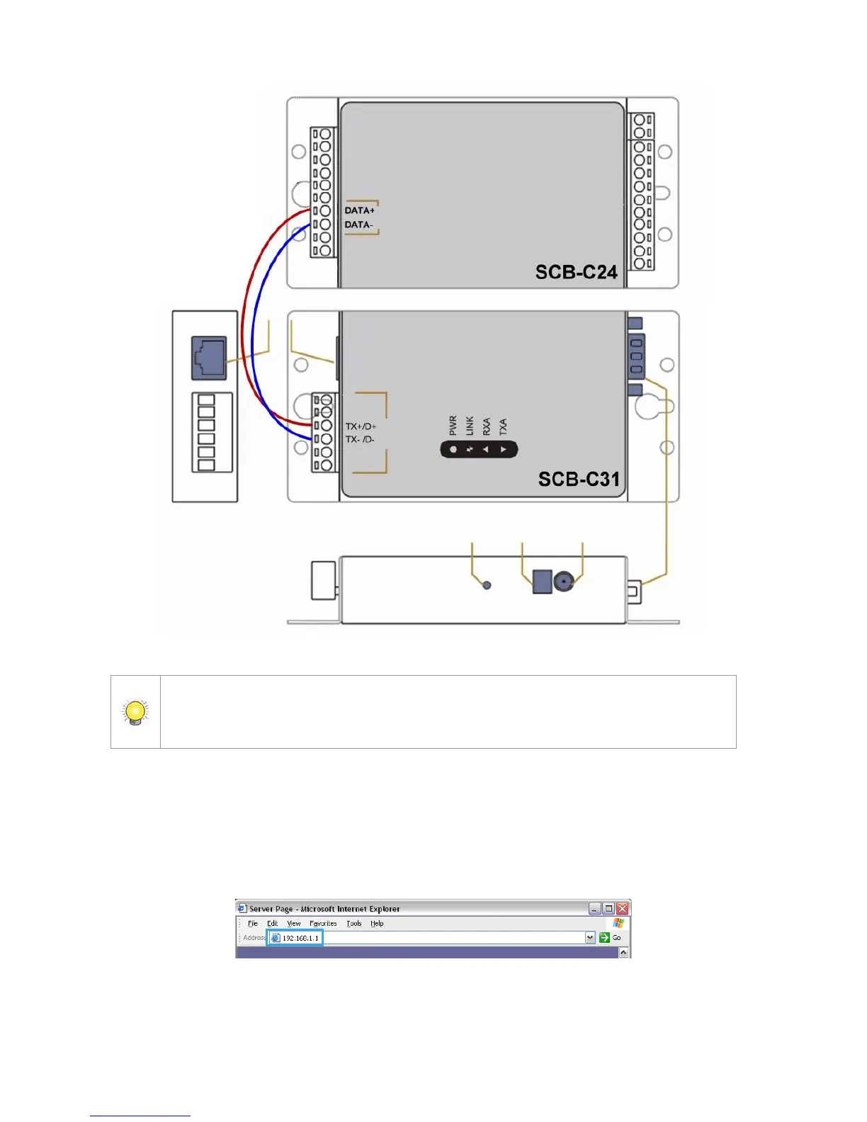 Step 1: Open Internet Explorer to setup SCB-C31. The default IP address is