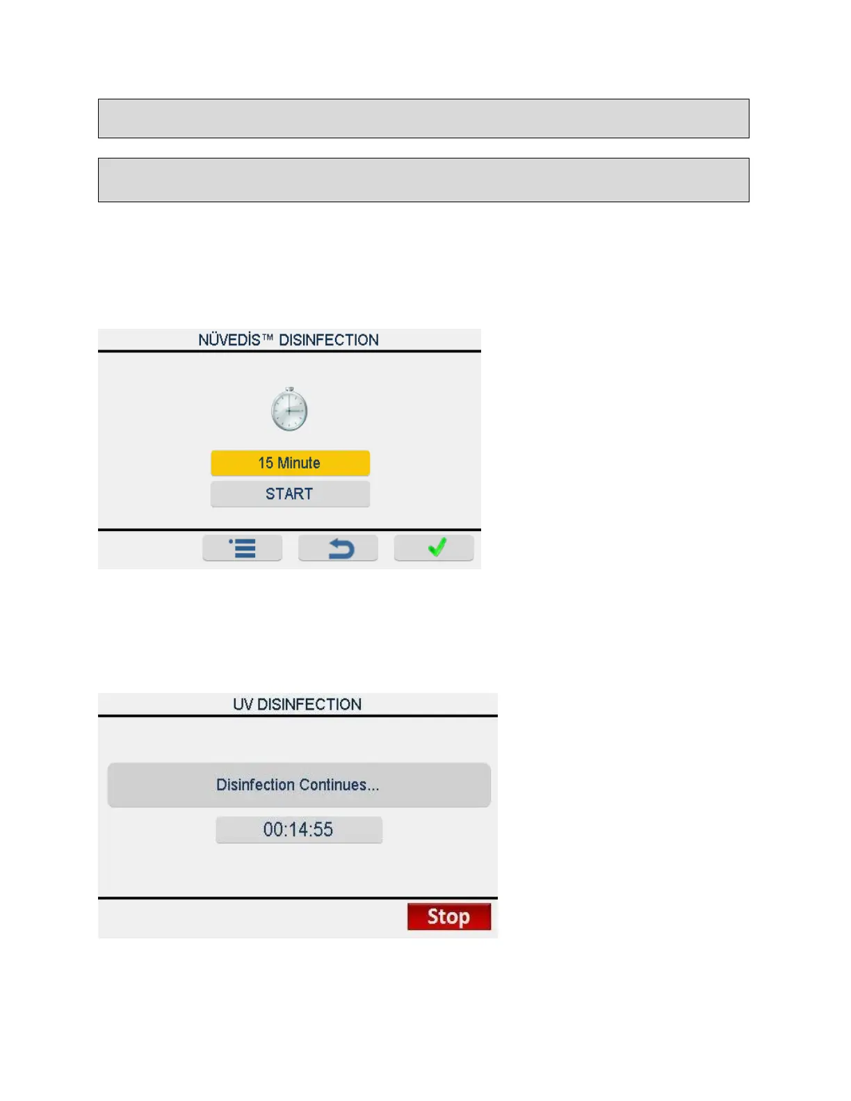 When the UV DISINFECTION is selected and approved by pushing ENTER (F4) key,
