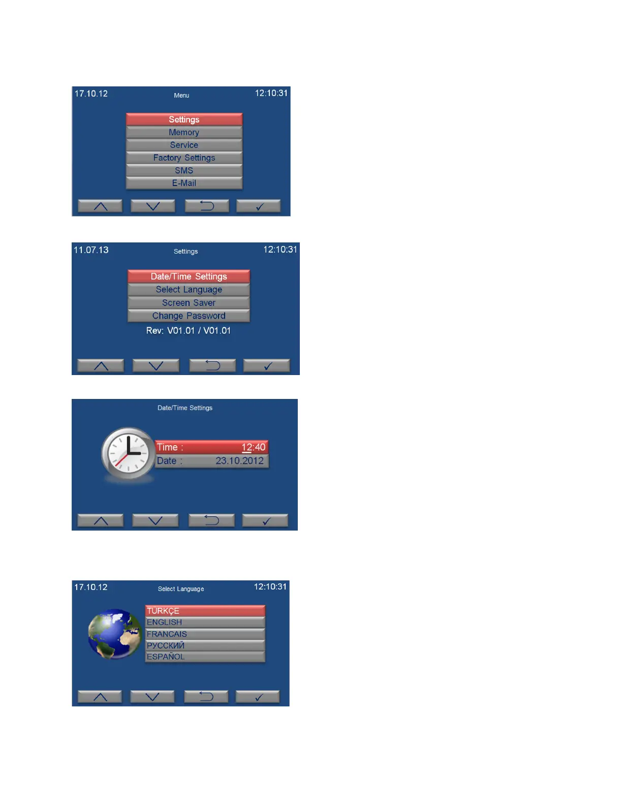 the control panel can be set as Turkish, English,