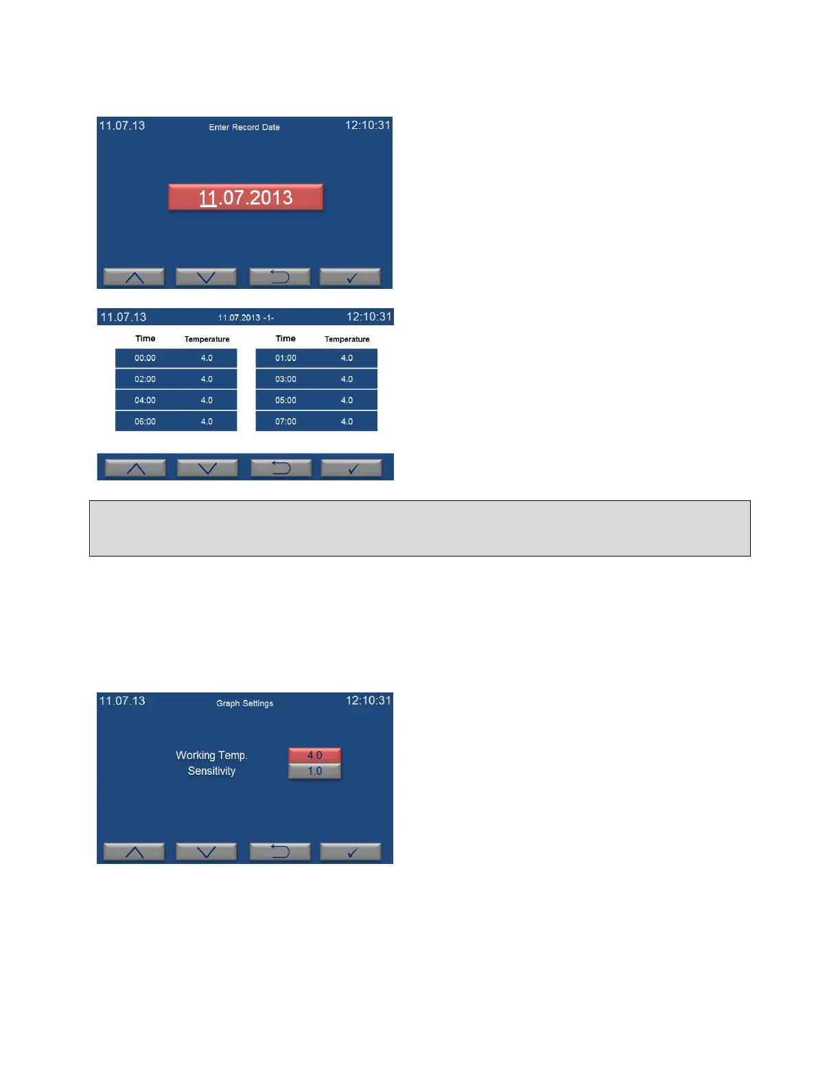 decrease (F2) keys. “Select Record Date” page appears when enter key (F4) is pushed. Enter a