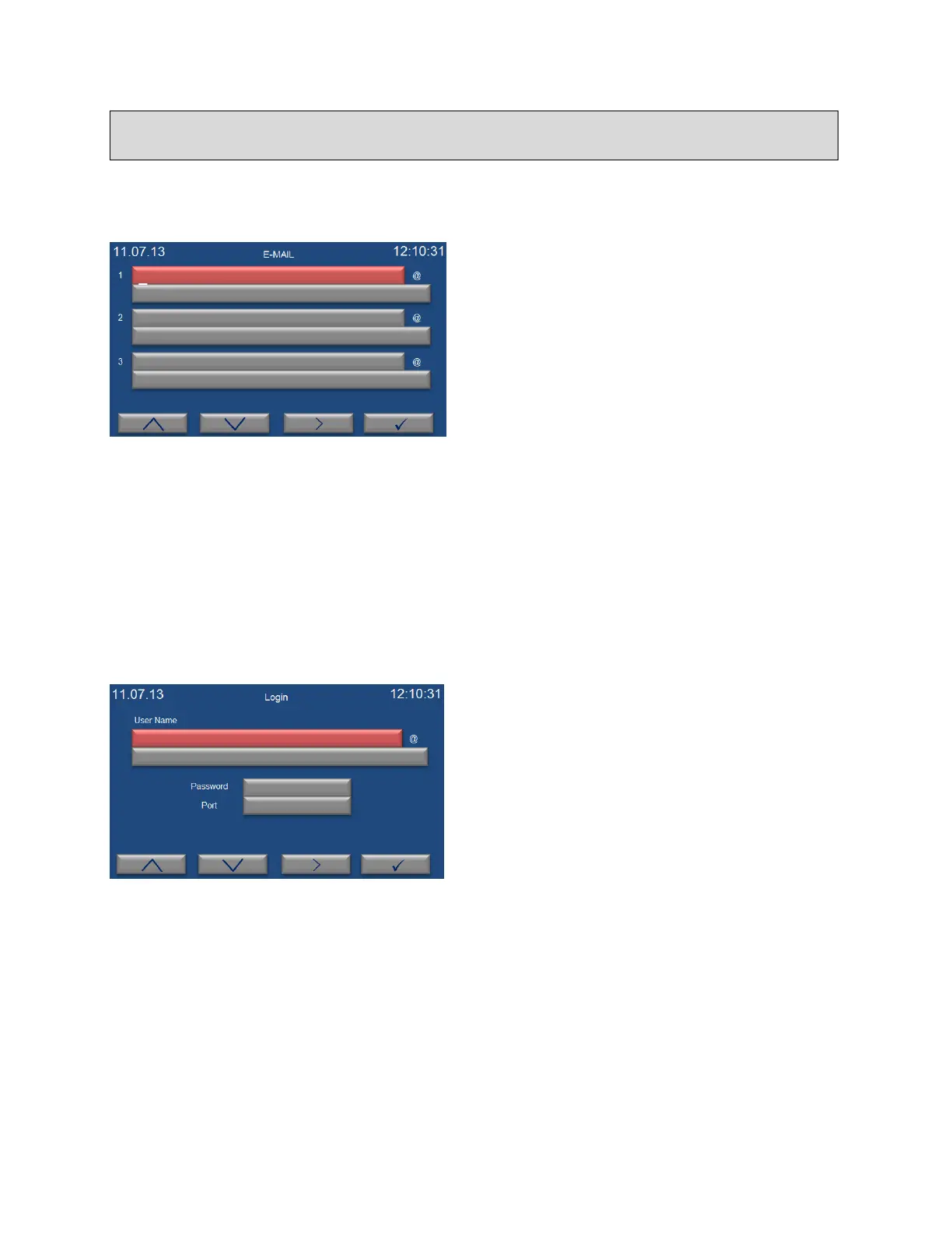 mail server is entered in the same way, push enter key (F4) to pass the “password” submenu.