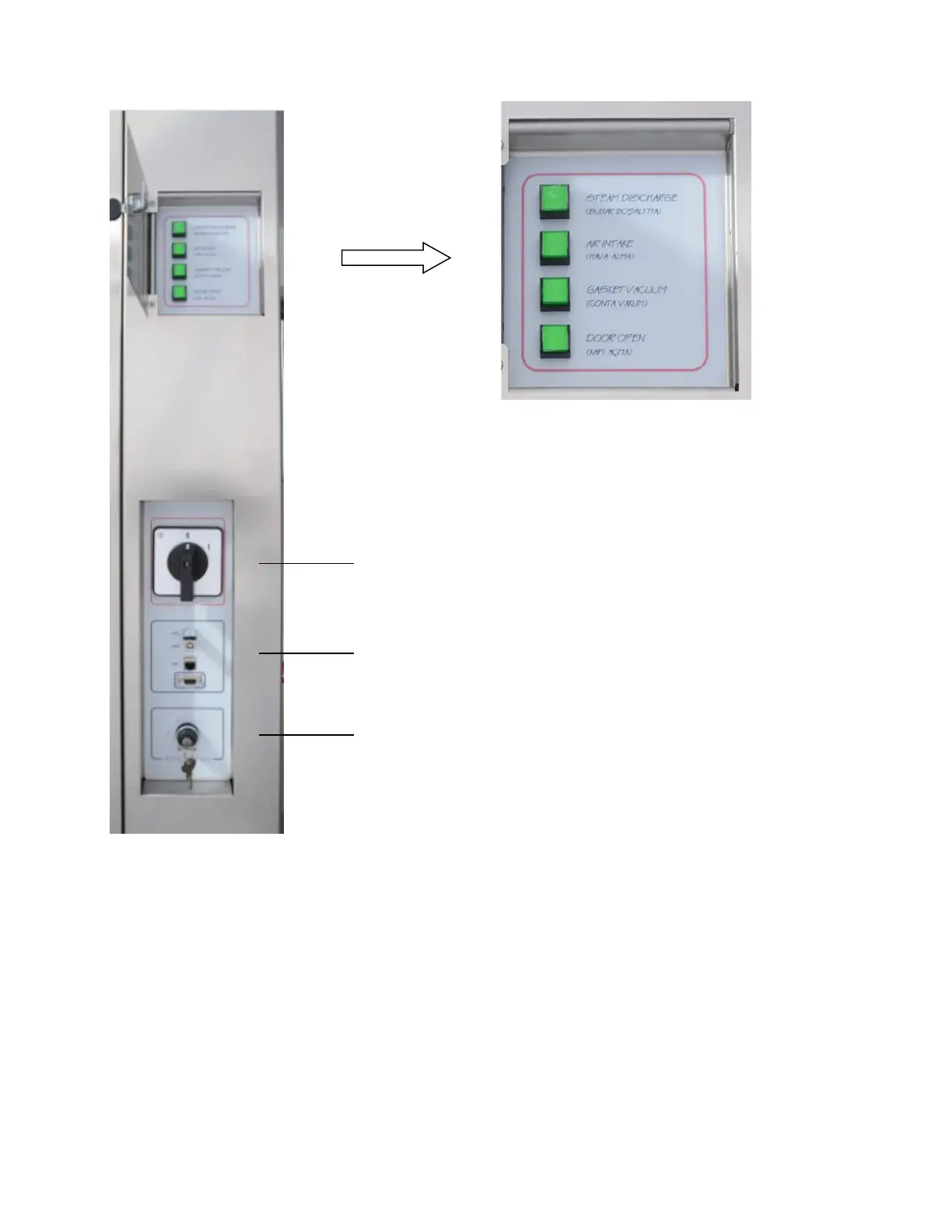 3- Jacket Manometer: Shows the pressure within the jacket surrounding the chamber.