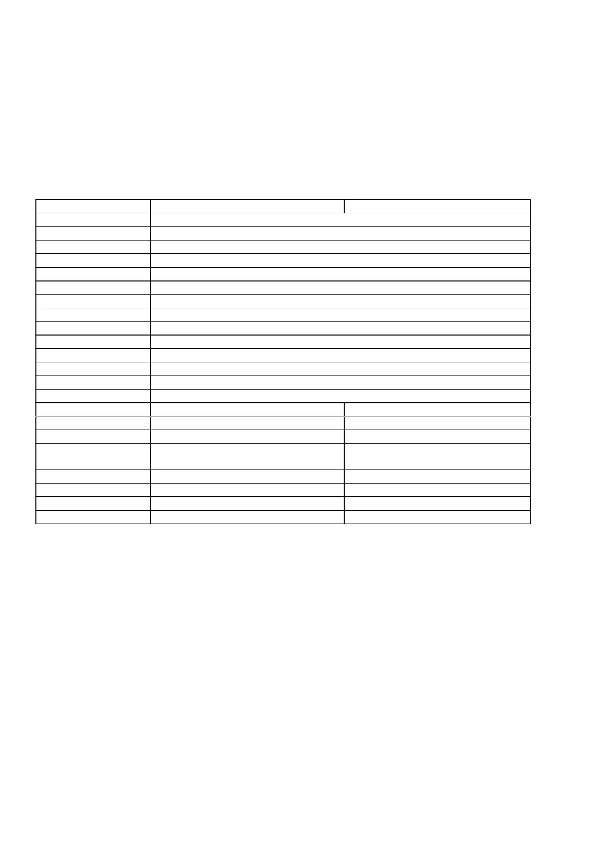 2.1 TECHNICAL SPECIFICATIONS TABLE