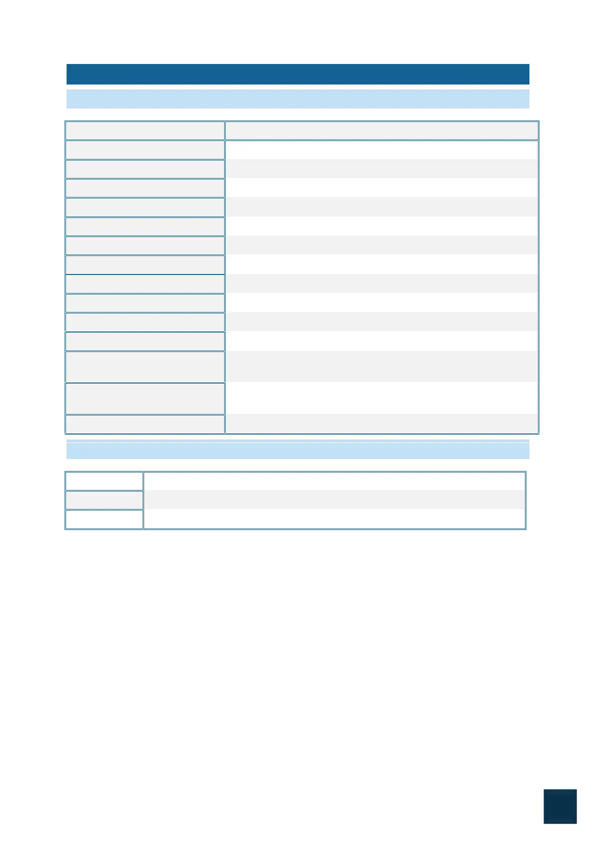 2.1. TECHNICAL SPECIFICATIONS TABLE