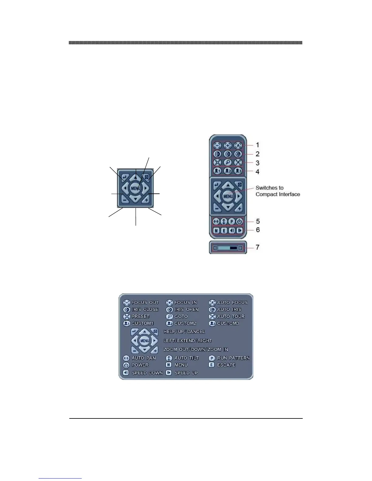 Menu button is the guide anchor position for all other buttons. When in PTZ interface mode, all
