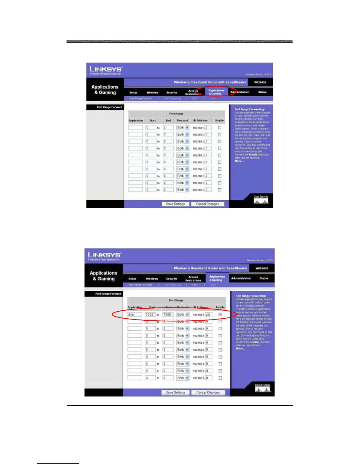 In the following examples, DVR7000 was used. Make sure you enable the port forwarding. Port 7000