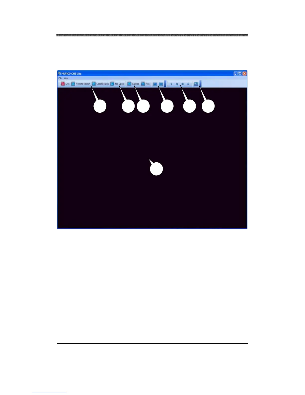 Live or playback video is displayed up to 16 cameras in the main window. When the actual video is