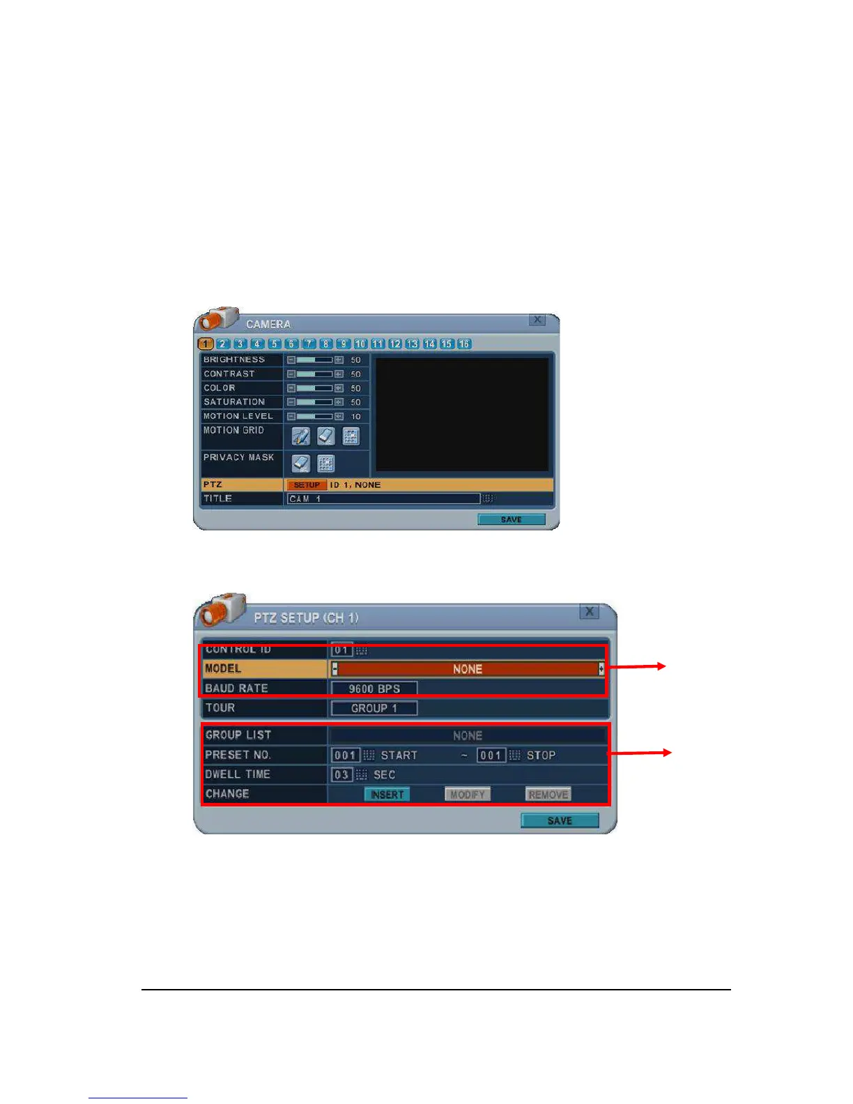 : Configure appropriate model and then enter the corresponding baud rate, PTZ