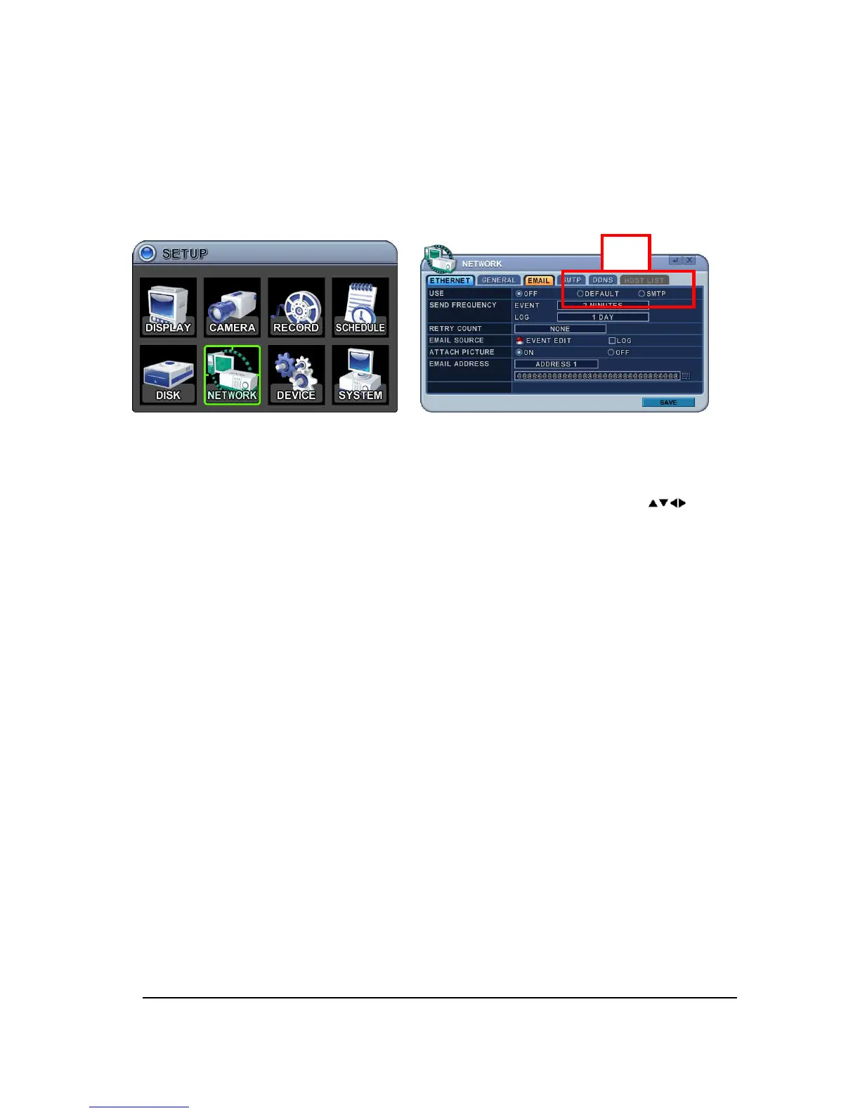 The mail server can use either the DVR mail server or your existing e-mail settings.