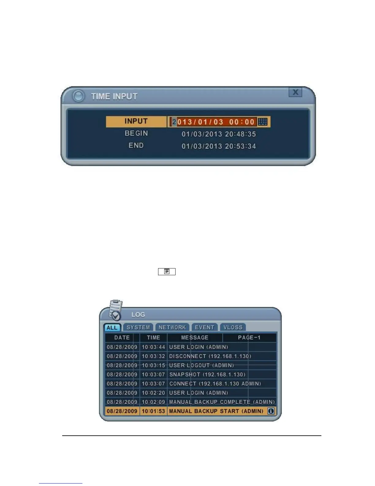1. Press [Time Search] button for 2 seconds. Then [Time Input] menu will pop up.