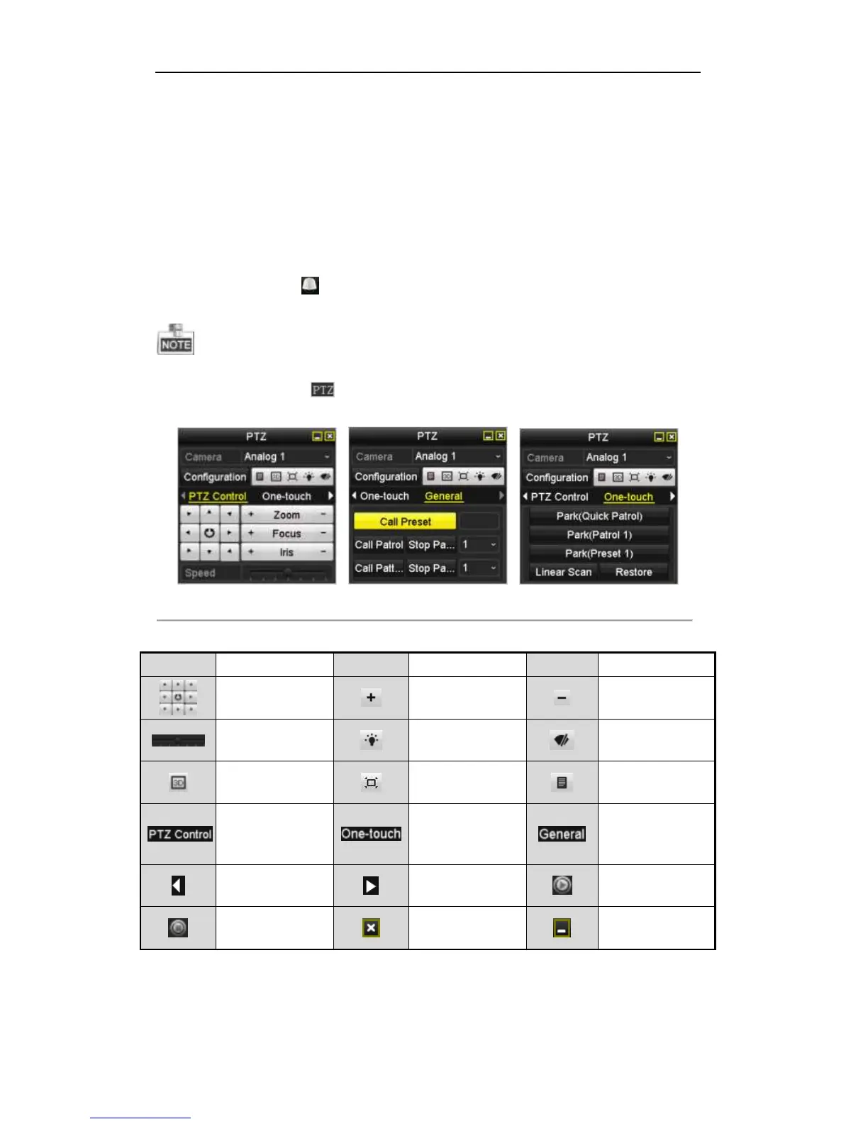 Table 4. 1 Description of the PTZ panel icons