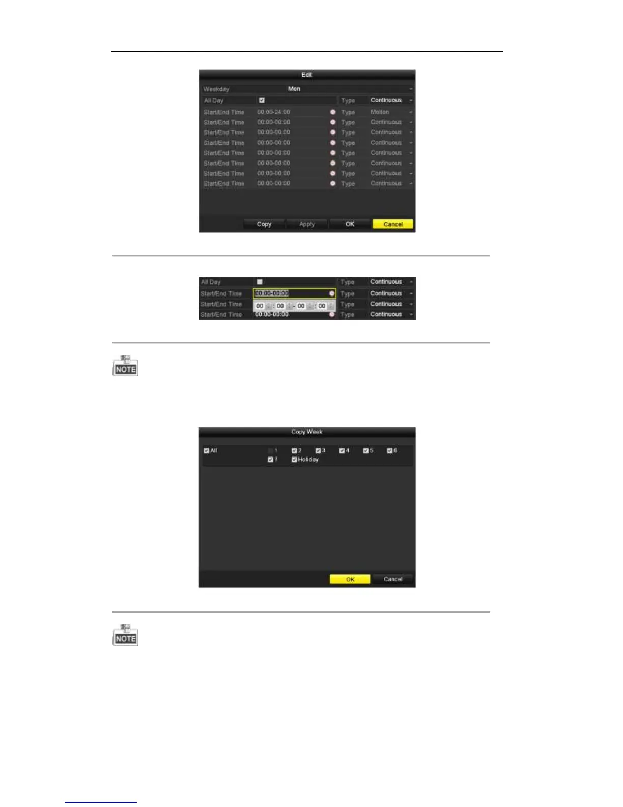 Repeat the above steps 1)-4) to schedule recording for other days in the week. If the schedule can also be