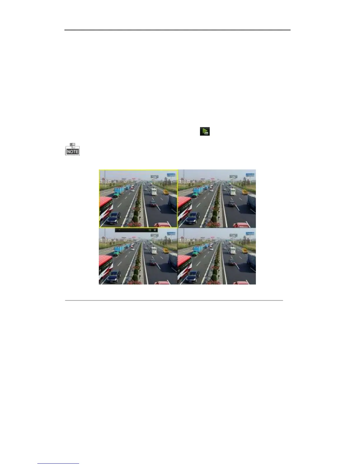 Play back the recorded video files of a specific channel in the live view mode. Channel switch is supported.