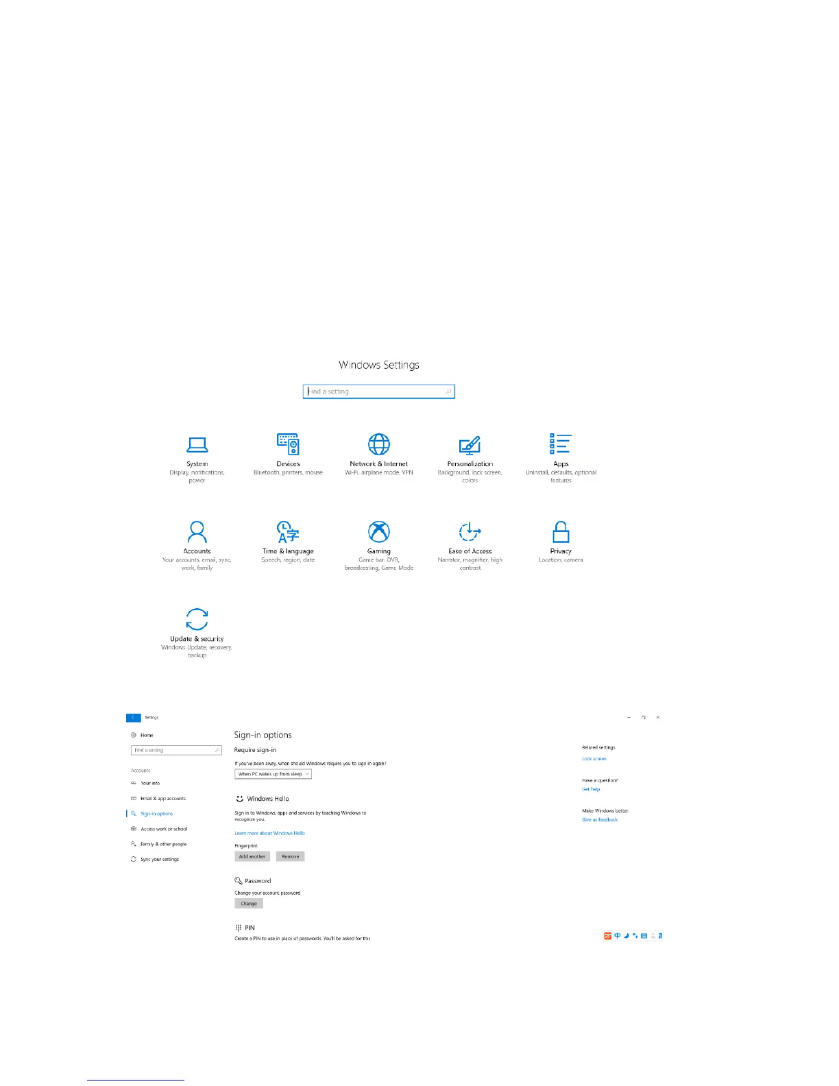 Setting->Sign-in options: