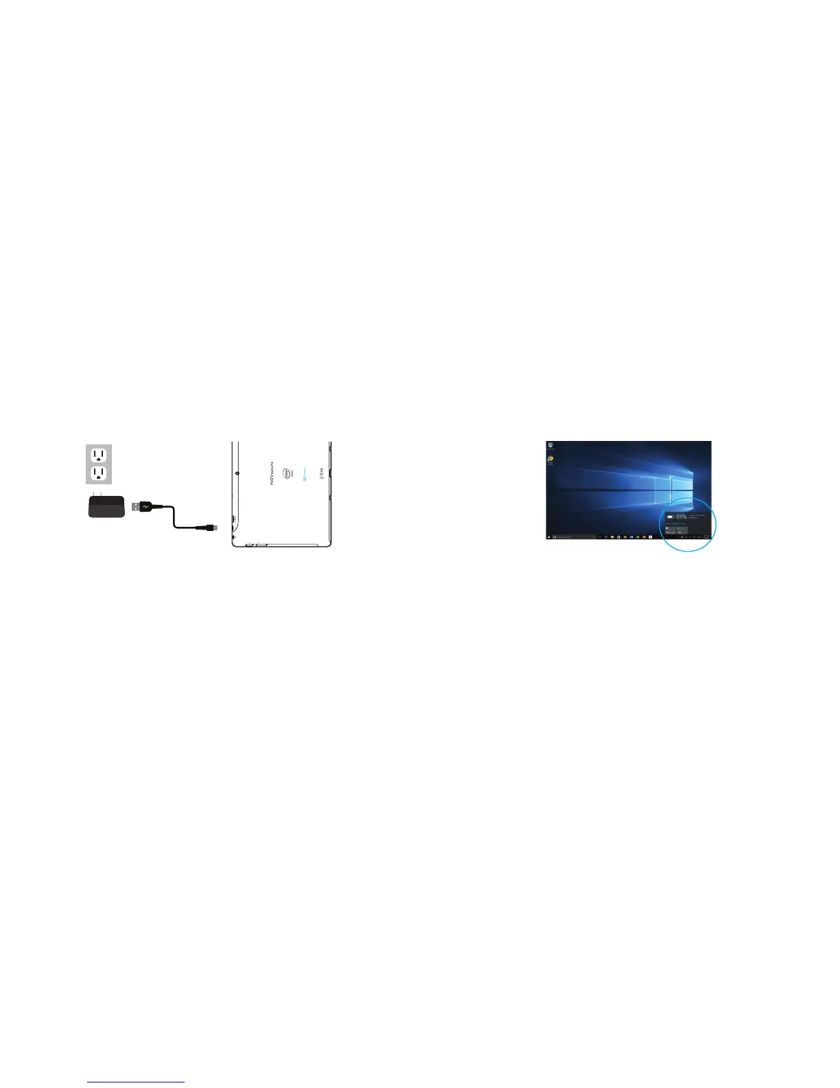 Connect the power adapter to a wall outlet, then to the tablet’s microUSB port as shown.
