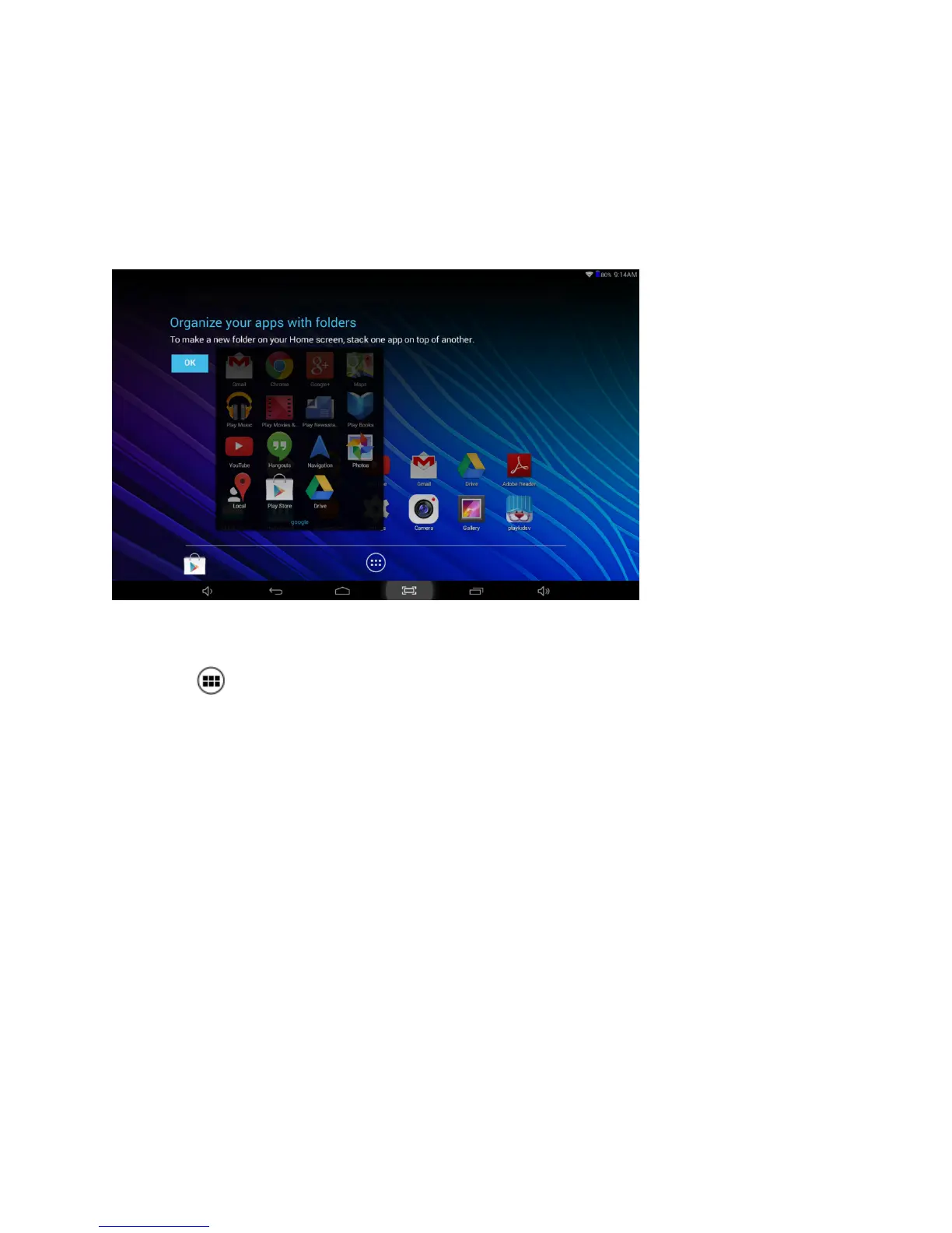 Press the App Tray icon to launch all Apps on the Tablet. Swipe your finger to the