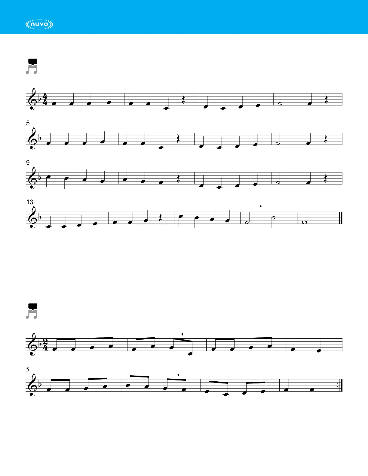 Notice the 2/4 time signature of the next tune. This tells us there are 2 beats in each bar.