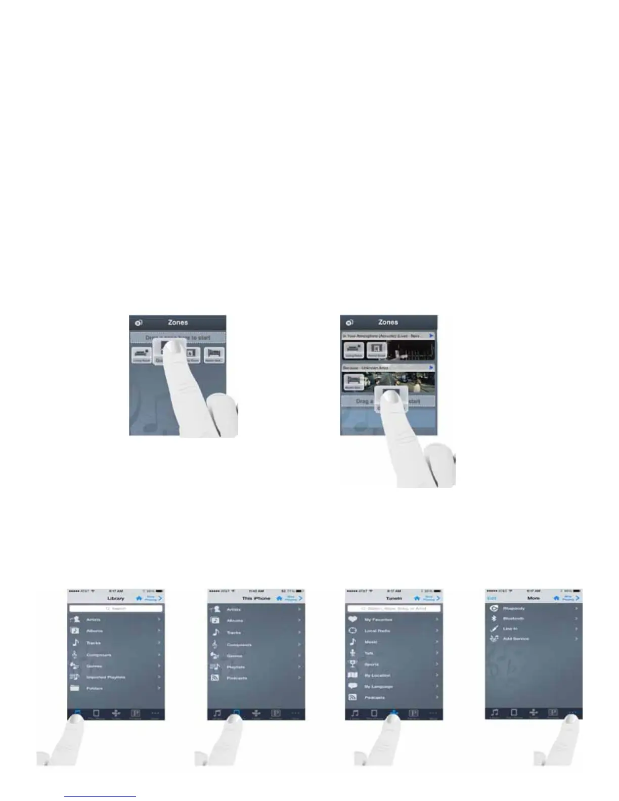 the zone group. Zones can play music individually or you can share music by dragging and dropping multiple zones into a