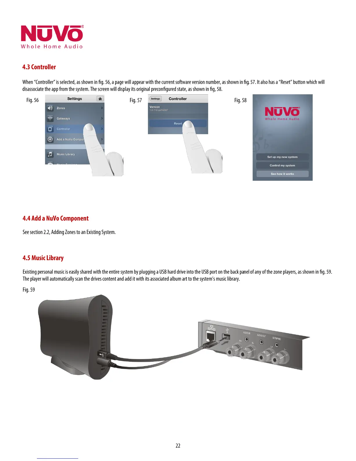 Nuvo P3100 - Controller Information and Reset; Adding a NuVo Component to the System; Managing the Music Library
