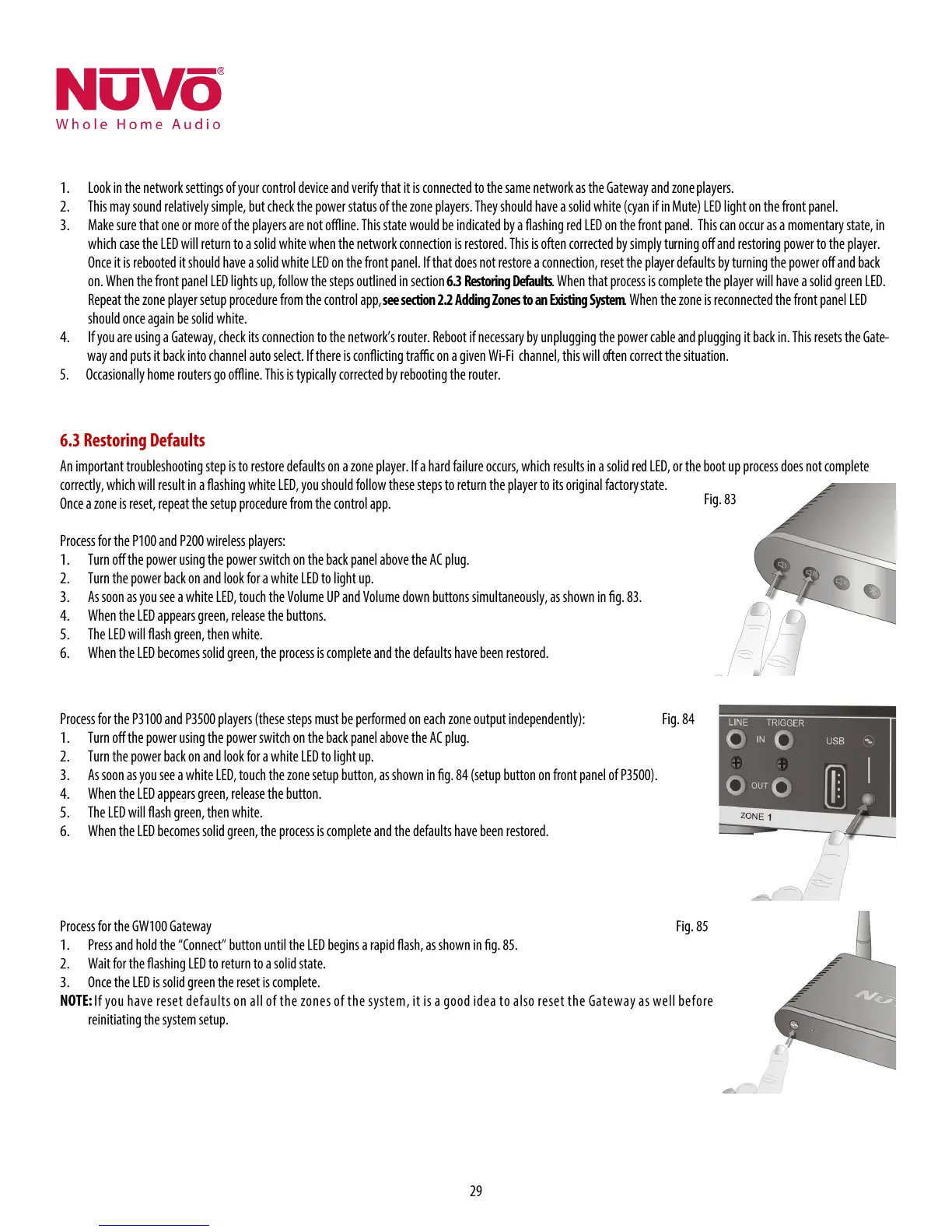 Nuvo P3100 - Restoring Player and Gateway Defaults