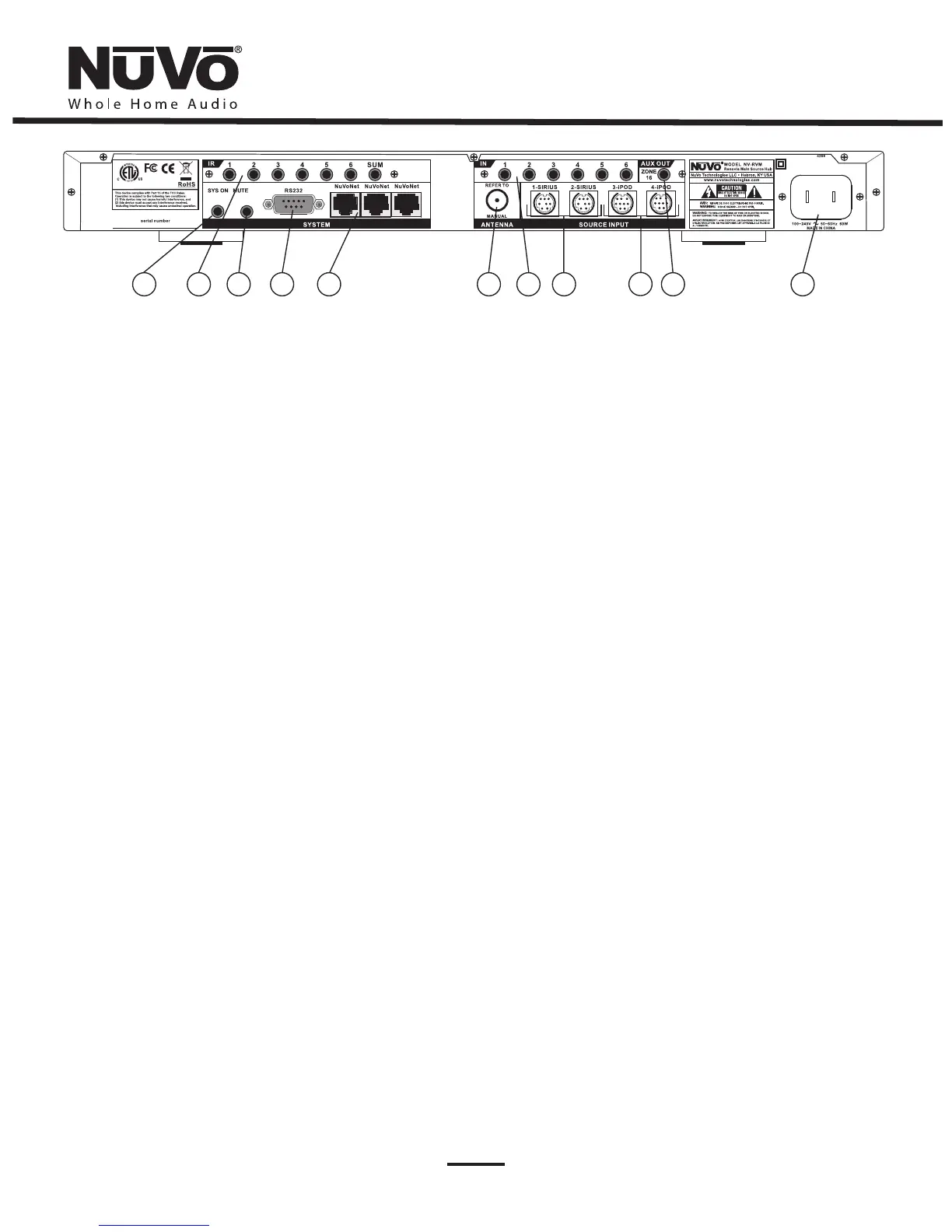 5. NuVoNet: Three RJ45 connections are provided to allow communication with the NuVoNet source components via a CAT5 wire.