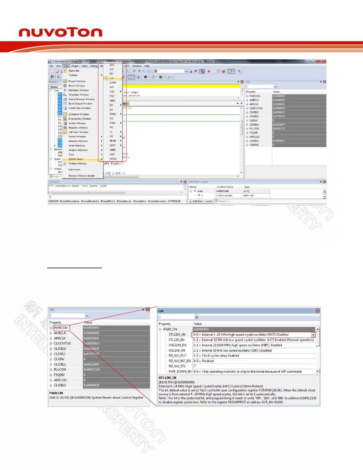 Figure 3-3 Direct Register Control Interface in Keil RVMDK Debug Mode