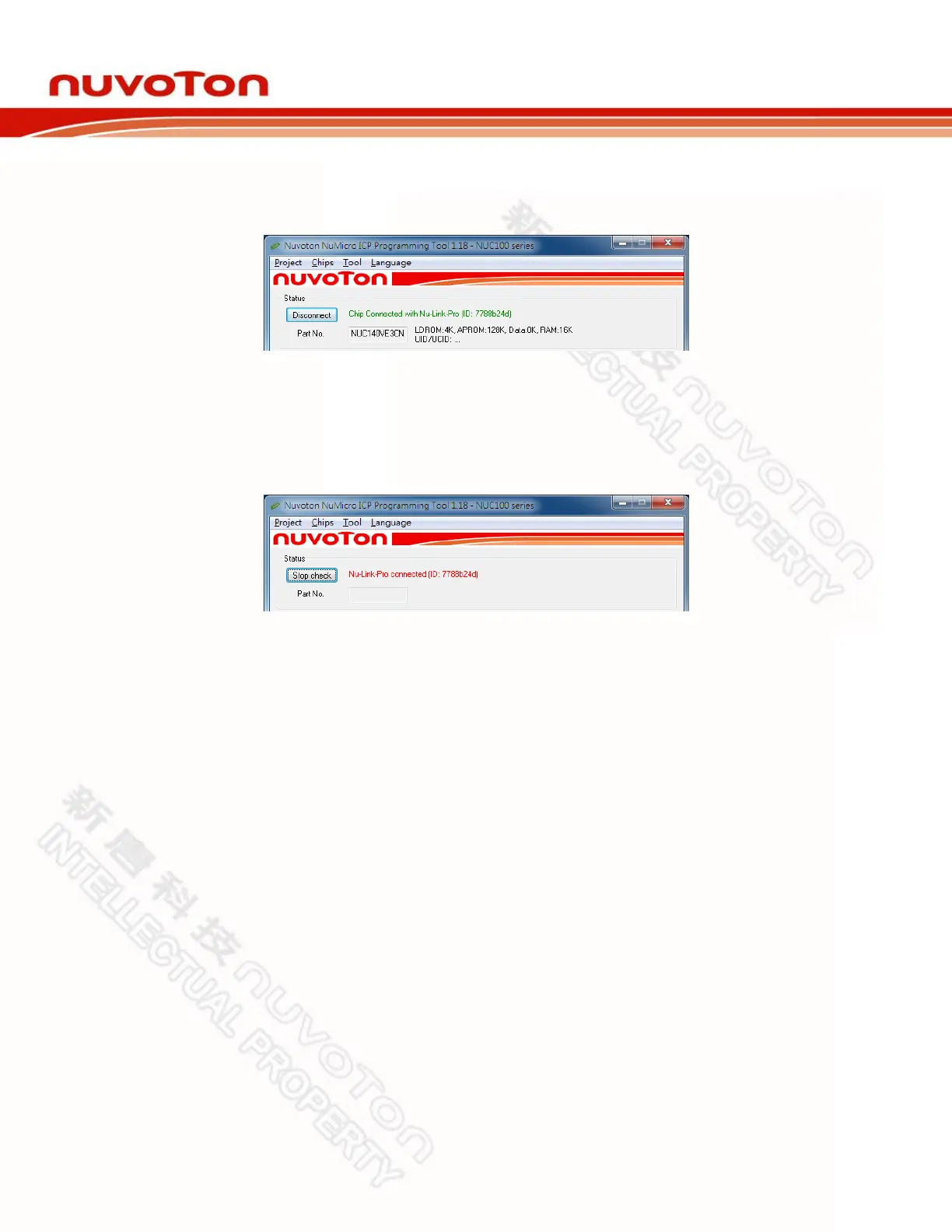 Step 8a: After the Connect button is clicked, the ICP Tool will be connected with the Nu-Link Adapter,