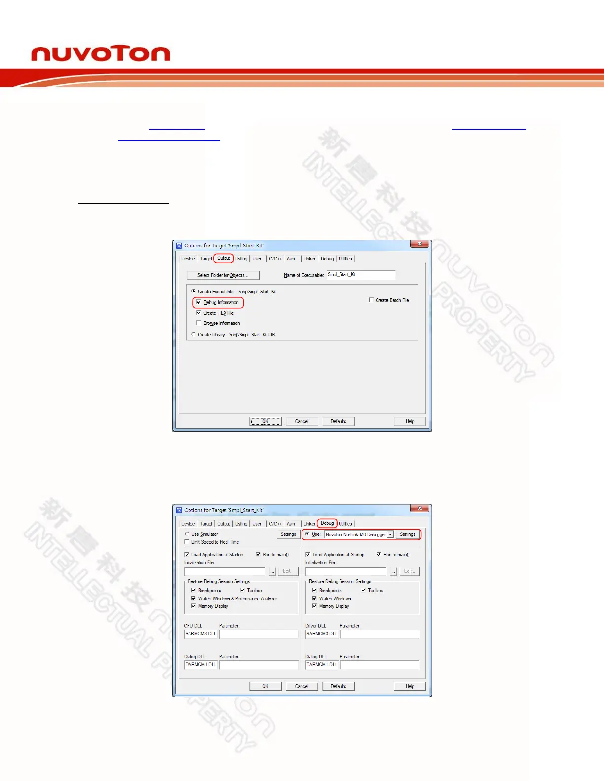 Step 4: Invoke Project → Options for Target → Debug, and make sure the Use:「Nuvoton Nu-