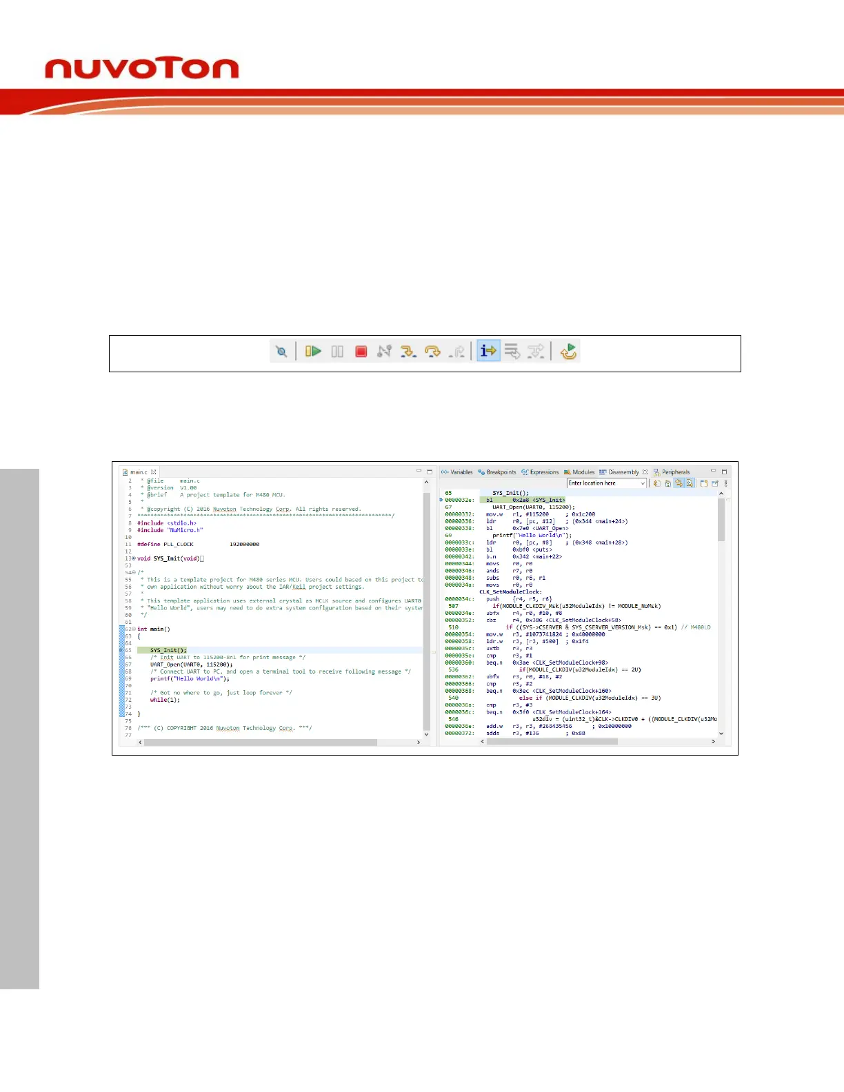 To open it, we need to click the Instruction Stepping Mode button on the upper toolbar, as follows: