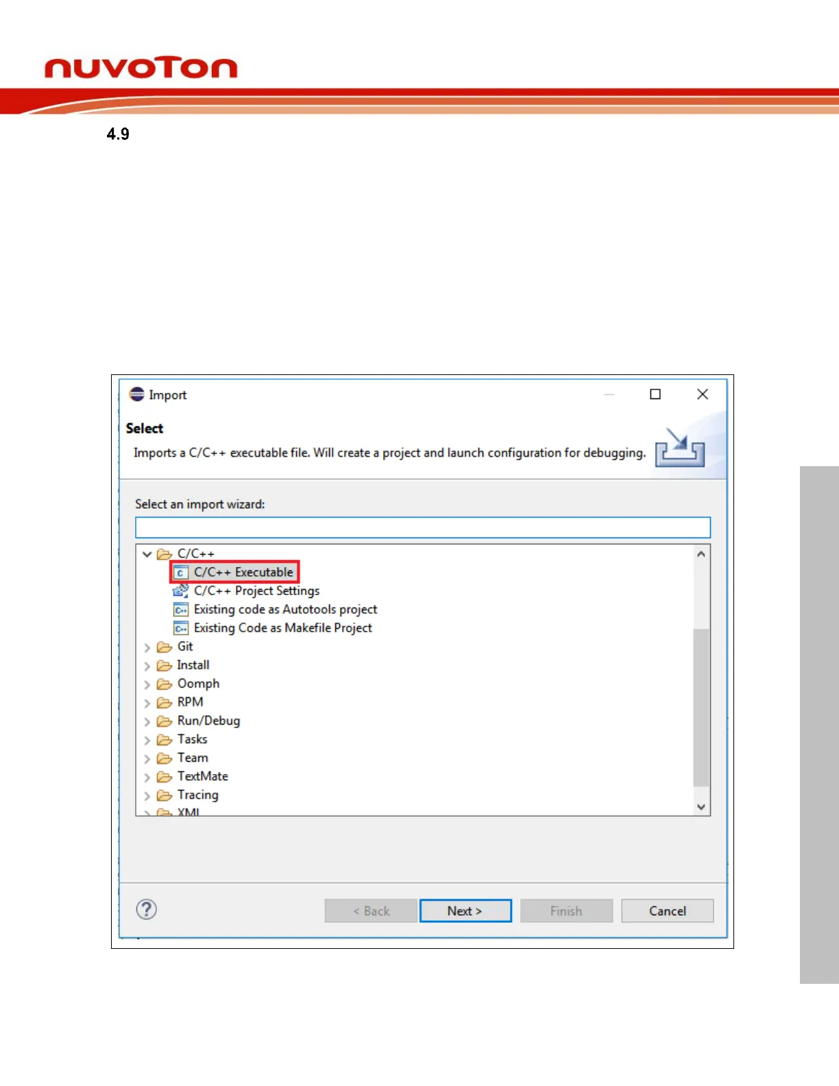 3. Choose GDB Nuvoton Nu-Link Debugging as a Launch Configuration (referring to Figure