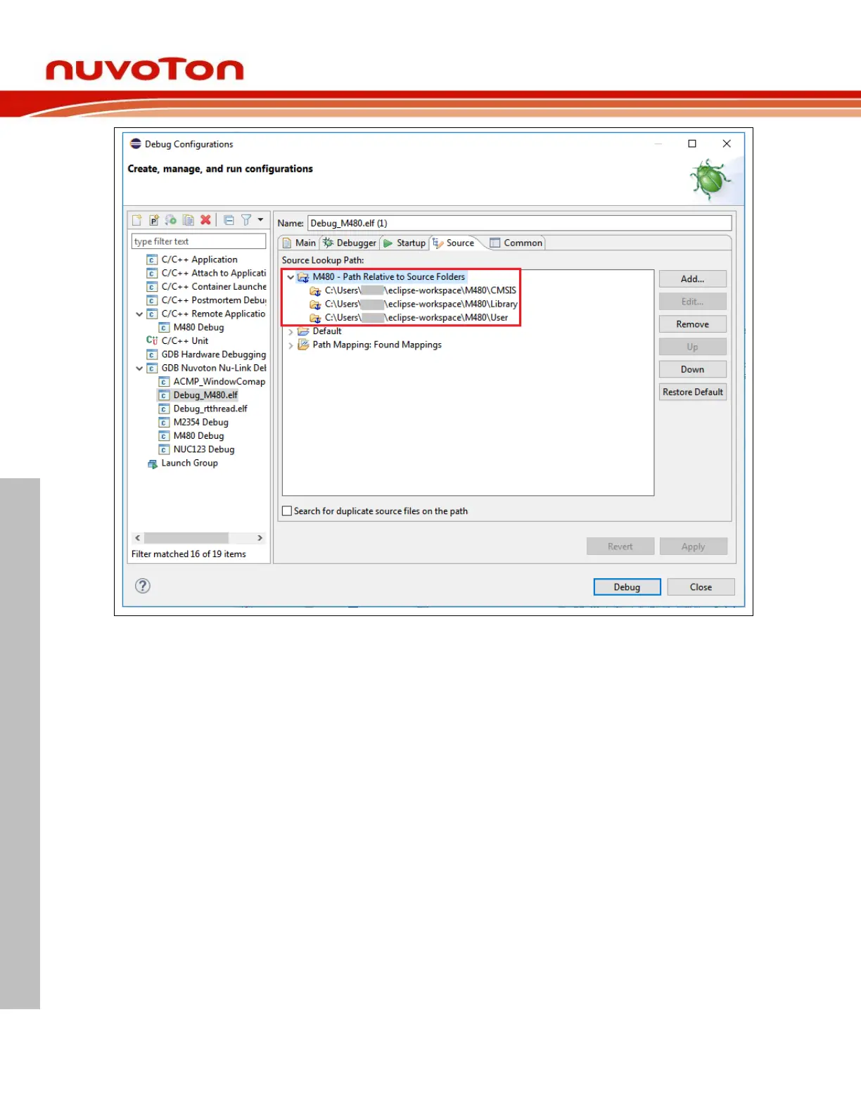 Nuvoton NuEclipse - Figure 4-31 Adding Source Lookup Path