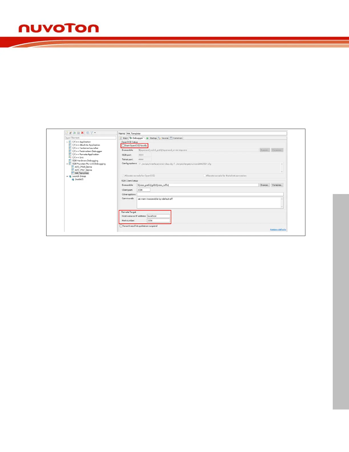 previous section to complete settings. However, the debug configuration of M4 differs from the Debugger