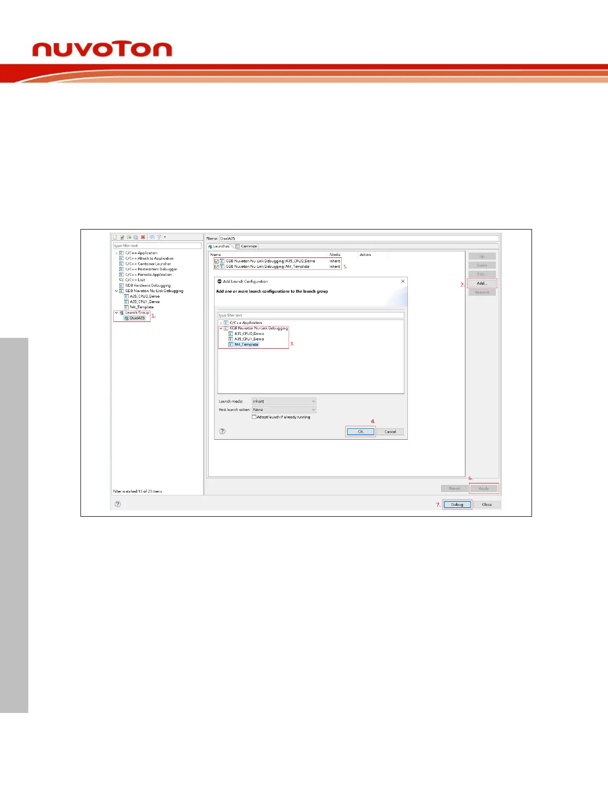 To launch A35 and M4 applications simultaneously, we use Launch Group by the following steps: