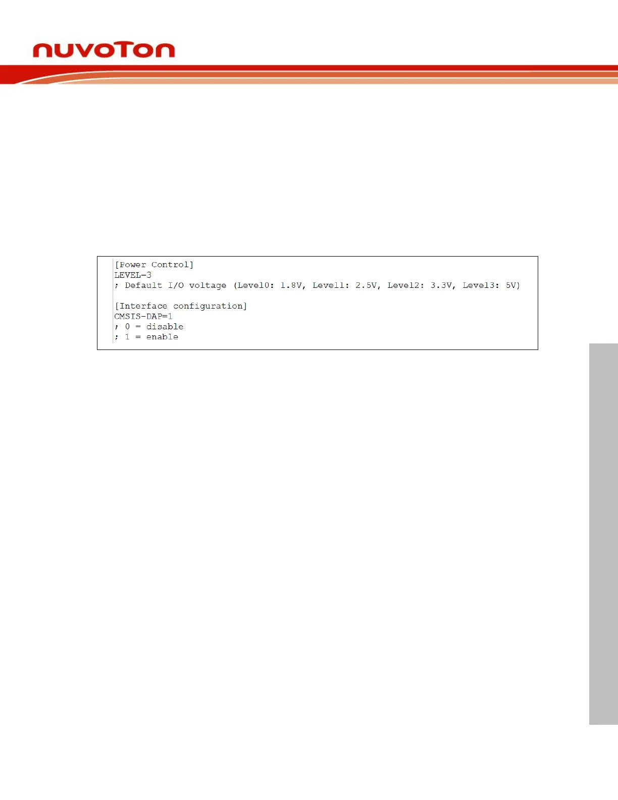 pop-up "NuMicro MCU" disk, you will see some options in NU_CFG.TXT.