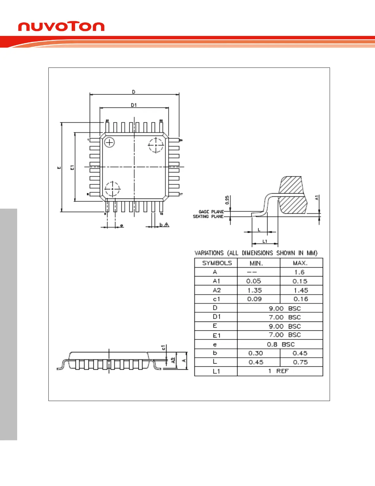 Nuvoton NuMicro MS51PC0AE - Figure 9.2-1 LQFP-32 Package Dimension