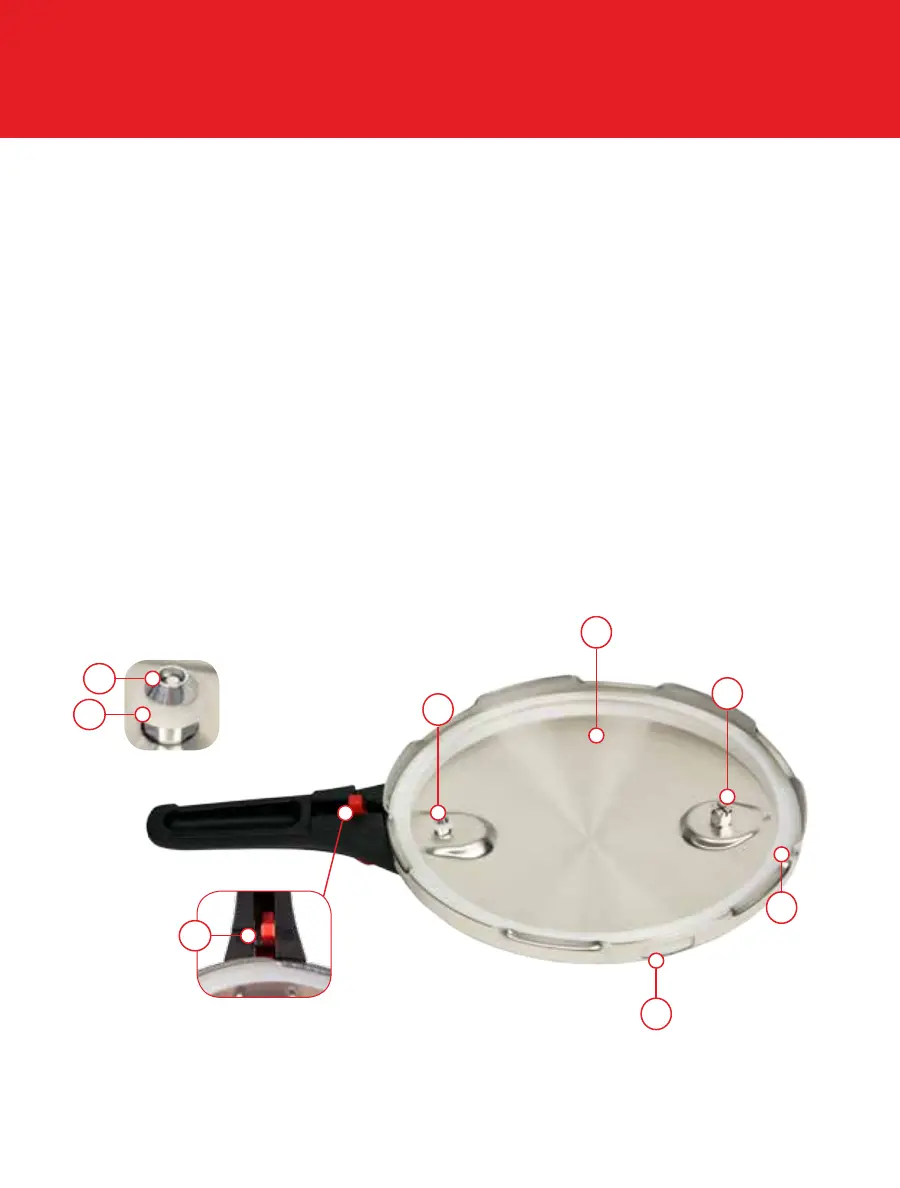 6. Rubber Gasket: Creates a pressure seal between lid and pot. All parts must remain
