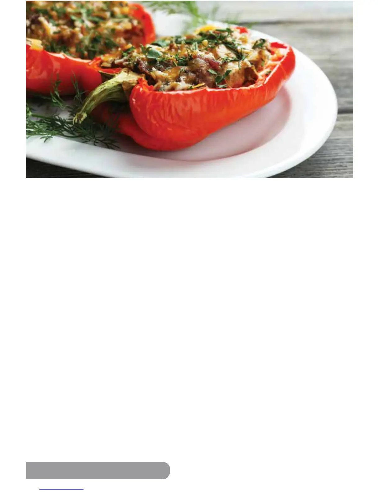 5. Fill up peppers with beef lling and top with tomato sauce and